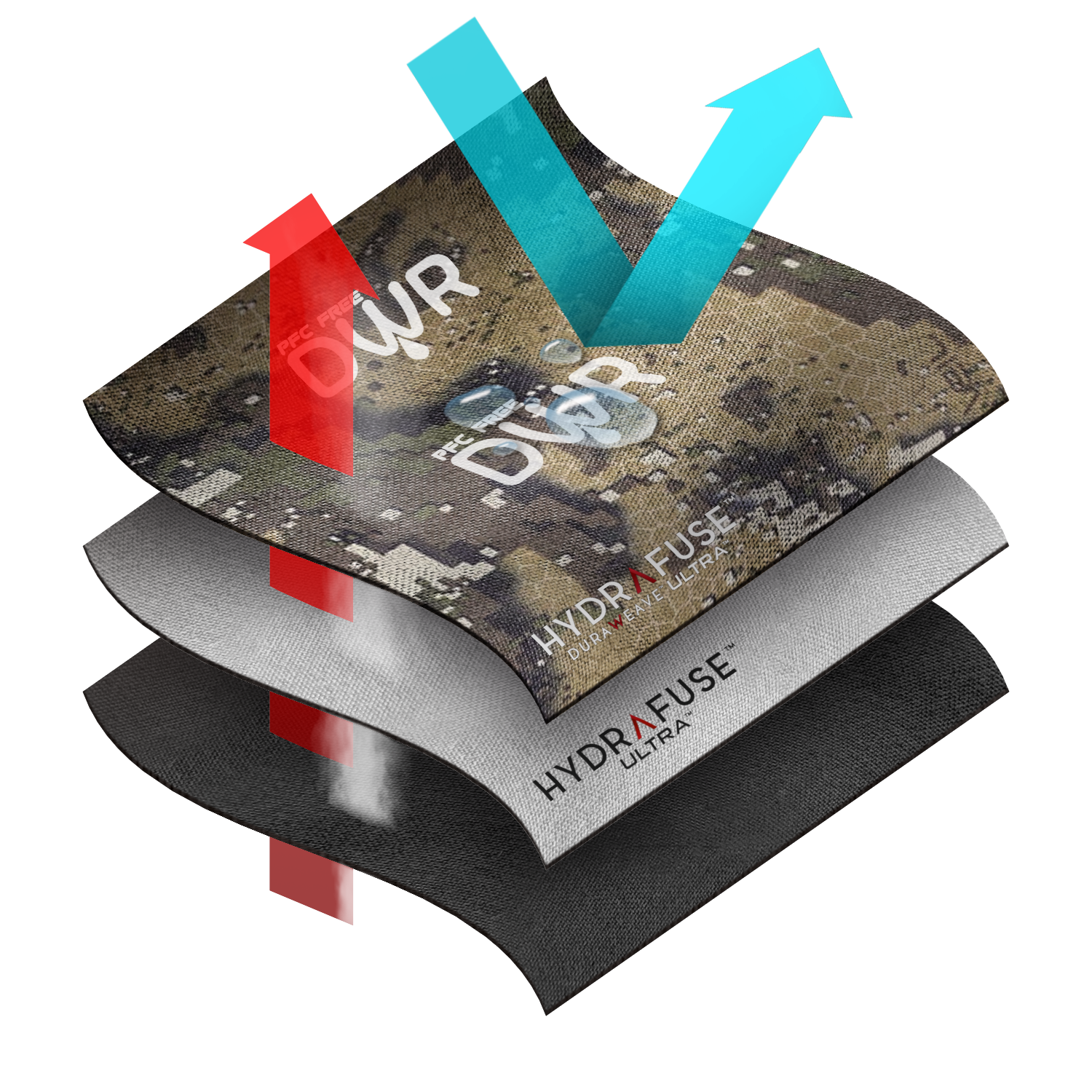 The ultimate all-rounder that performs from the forest floor up to the mountain tops and stands up to a bashing. Created for the hardcore hunter who needs a reliable hunting barrier layer for all manner of conditions and terrains. The Odyssey V2 combines waterproofing and breathability with a quiet outer fabric for those close quarters bush stalking.