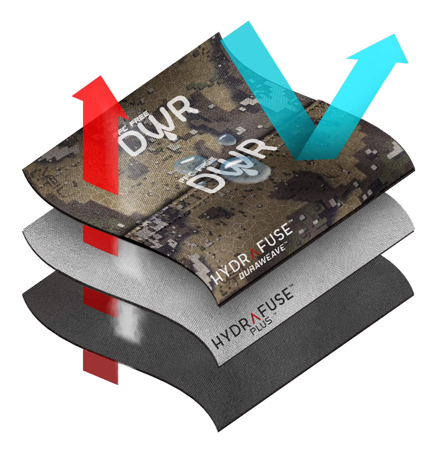 The ultimate all-rounder that performs from the forest floor up to the mountain tops and stands up to a bashing. Created for the hardcore hunter who needs a reliable hunting barrier layer for all manner of conditions and terrains. The Odyssey V2 combines waterproofing and breathability with a quiet outer fabric for those close quarters bush stalking.
