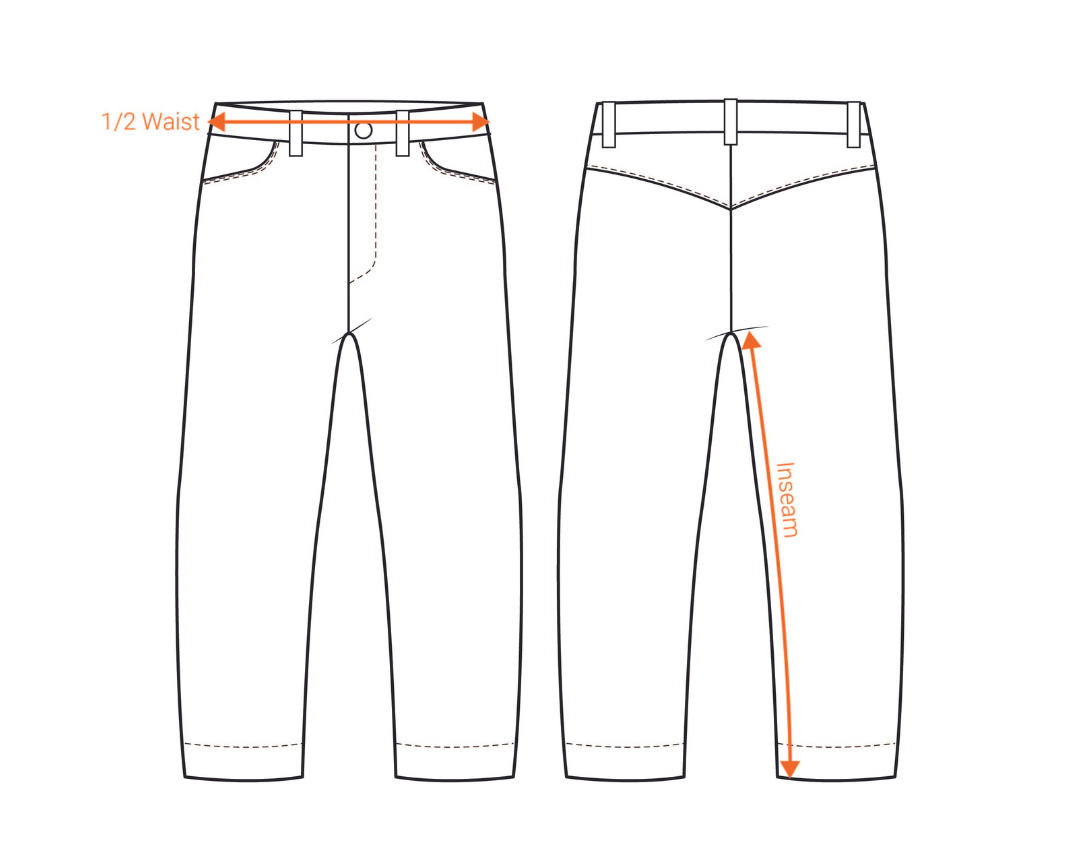 ½ Waist: Measure from side to side at the waistband.